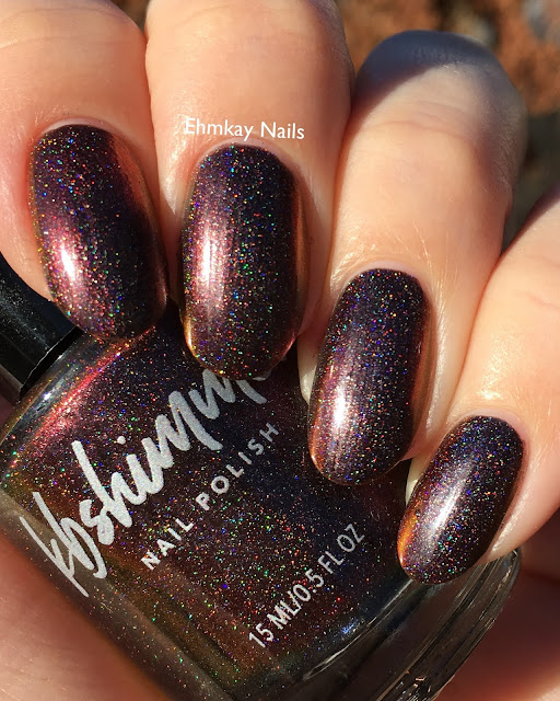 Obsidian: 2 coats. "Obsidian is a new addition to our color-shifting multichrome nail polish line. Obsidian features a deep black hue that shifts to molten shades of umber, crimson, orange, and gold." This is the non-holo version and it just as stunning! But I like stuff in my multi-chromes!