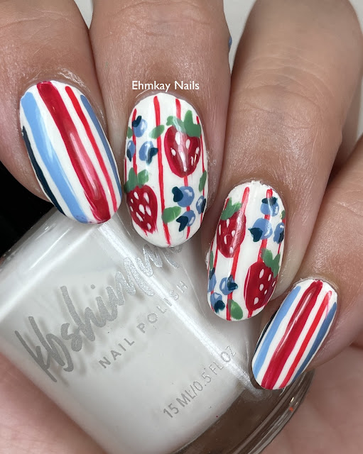 I am STILL wearing this manicure although it looks rough now. I had blueberries and strawberries for breakfast haha. Doing this mani reminded how much I love nail art. Hope you have a great weekend, Tami!